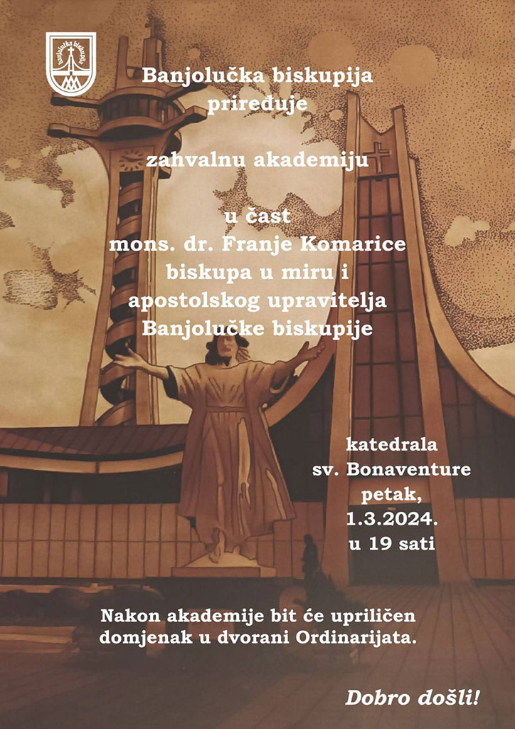 U petak, 1. ožujka, u 19 sati održat će se u katedrali zahvalna akademija posvećena dosadašnjem biskupu mons. Franji Komarici.