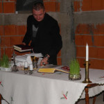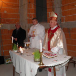 U pratnji svoga tajnika vlč. Marka Stojčića, biskup Komarica došao je među vjernike te župe da bi s njima i njihovim sugrađanima pravoslavnim i muslimanskim vjernicima slavio Svetu Misu u tek pokrivenoj crkvi koja još nema ni vrata ni prozora. Radost nazočnih 45 „misara“ je bila ogromna, koju oni nisu ni krili. Zahvaljivali su svome biskupu što im je došao da s njima slavi Misu na najradosniji kršćanski blagdan.