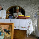 Na kraju Svete mise o. Tomislav je uručio kardinalu Puljiću sliku trapističke crkve Marije Zvijezde kao uspomenu na njegovu rodnu župu.