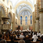 Liturgijsko pjevanje tijekom Svete mise animirao je Katedralni mješoviti zbor „Josip Stadler“ pod ravnanjem vlč. Marka Stanušića. Pjevane su iste liturgijske popijevke kao na Svetoj misi s papom Franjom na stadionu Koševo prije godinu dana.