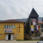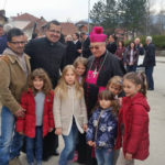 Uz zvonjavu zvona s improviziranog drvenog zvonika – koji je za tu zgodu bio urešen vatikanskom i zastavom hrvatskog naroda u BiH, te likom pape Franje na nekoliko metara dugačkom platnu – apostolskog nuncija su pred zgradom društvenog doma koji već 22 godine služi kao crkva, dočekali vjernici koje je nuncij blagoslovio i s njima svečano ušao u crkvu.