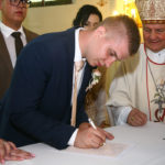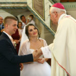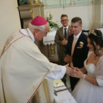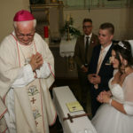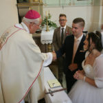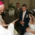 Za vrijeme prvog slavlja sklopili su sakrament ženidbe mladenci Franjo Kljajić iz župe Kaptol u požeškom kraju i Antonija Bešker iz župe Buk. Mladoženju Franju Kljajića je, kao trinaesto dijete roditelja iz župe Sokoline kod Kotor Varoša, a doseljenih u župu Kaptol, krstio biskup Komarica 1996. godine. Velika je bila radost i mladenaca i brojne njihove rodbine, koja je dupkom ispunila crkvu da je biskup Komarica s njima zajedno molio Božji blagoslov za mladi bračni par.