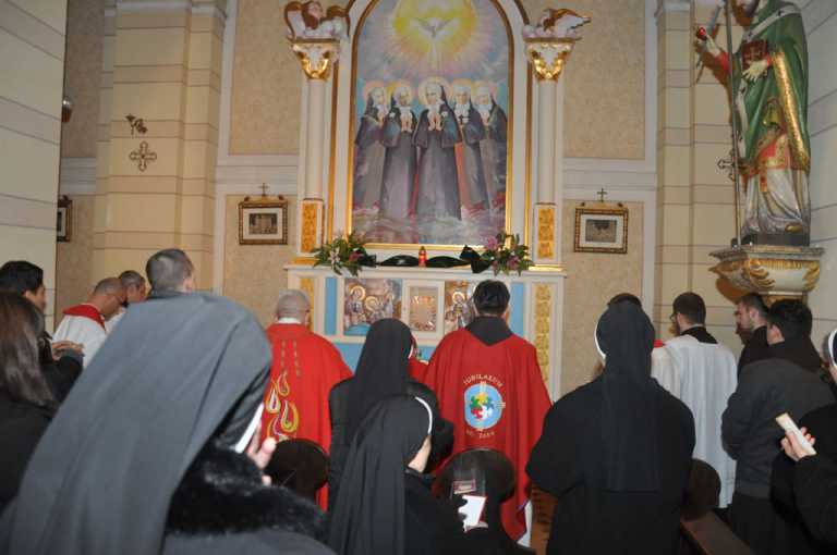 Euharistijsko slavlje u samostanskoj crkvi sestara Kćeri Božje ljubavi predvodio je pomoćni biskup banjolučki mons. Marko Semren u zajedništvu s provincijalom Franjevačke provincije Bosne Srebrene fra Jozom Marinčićem i većim brojem svećenika, a uz sudjelovanje mnoštva redovnica, bogoslova i vjernika okupljenih u crkvi koja je i svetište Bl. Drinskih mučenica.