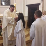 Pod Misom je pjevao mali župni zbor a svirala je župna vijećnica i večerašnja kuma gđa Blaženka Lukenda.