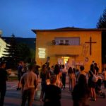 Od sadašnjeg bogoslužnog prostora do pastoralnog centra u izgradnji, mladi “Nanovo rođenih” su predvodili hodočasničku kolonu duž glavne gradske Titove ulice, dostojanstveno noseći križ i moleći, unatoč provokacijama daleko brojnije skupine tzv. “antifašista” – poklonika komunizma, partizanskog pokreta i lika i djela Josipa Broza Tita – koji su pokušali omesti molitveni skup puštanjem preglasnih partizanskih pjesama iz obližnjeg spomen-parka.