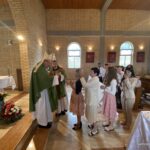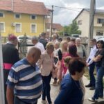 Nakon svete mise u dvorištu župne crkve uslijedilo je kratko druženje uz razgovor s biskupom.