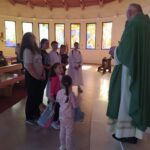 Na kraju misnog slavlja, držeći svoje školske torbe, okupili su se oko oltara. Zazivajući Božji blagoslov na djecu, koja će krenuti u još jednu novu avanturu, u novu školsku i vjeronaučnu godinu, župnik im je naglasio da ne zaborave Boga staviti na prvo mjesto, s Bogom uvijek računati  i s njim koračati.