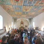 Ljubazni domaćini pojasnili su hodočasnicima da je današnja crkva izgrađena u 18. stoljeću na temeljima srednjovjekovne crkvice iz 1641. kao i da posebnu umjetničku vrijednost ima drveni kasetirani strop s oslikanim scenama iz života Isusa, Marije i svetaca i latinskim citatima iz 1740. godine. Kip Gospe Krasnarske, koji se sada nalazi u proštenjarskoj crkvi, ratne 1942. godine prenesen je u župnu crkvu sv. Antuna Padovanskoga u Krasnom te je svečano nošen u procesiji do svetišta o proljetnim kvatrama te vraćan na isti način u jesenskim kvatrenim danima.