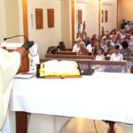 Fra Domagoj se u propovijedi osvrnuo na svetkovinu Presvetoga Trojstva, kojega ljudski um ne može svojim snagama dokučiti, a koje je i temelj naše vjere, Trojstva u jedinstvu, jedan Bog, a tri božanske osobe čija je sveza savršena ljubav, koju bi i mi vjernici, trebali prenijeti u svoj život. I „sv. Vid je u svojoj vjeri imao i pokazao to svjedočanstvo ljubavi. Sveti su, pa i sveti Vid, uzori za našu vjeru kroz svoju molitvu, predanost Bogu i bližnjemu. I za ove naše prvopričesnike možemo reći da su svete duše, zbog svoje mlade dobi, neiskvareni i iskreni“, kazao je propovjednik. U nastavku je iz oltarskog buketa uzeo jednu ružu, kojoj je trgao latice i bacao na pod navodeći kušnje života i grijeh na koji, kako postajemo stariji, malo po malo pristajemo. Ruža je na kraju postala „očerupana“, kao duša onih koji pristaju na grešnički život. „Želim da ne postanete ‘ogoljeni’ kao ova ruža, nego da ustrajete u životu po vjeri“, zaključio je fra Domagoj obraćajući se prvopričesnicima.
